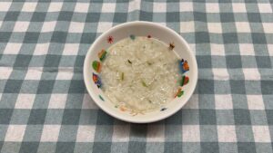 今日は1月7日ということで七草の説明をしておやつに七草粥を食べました。