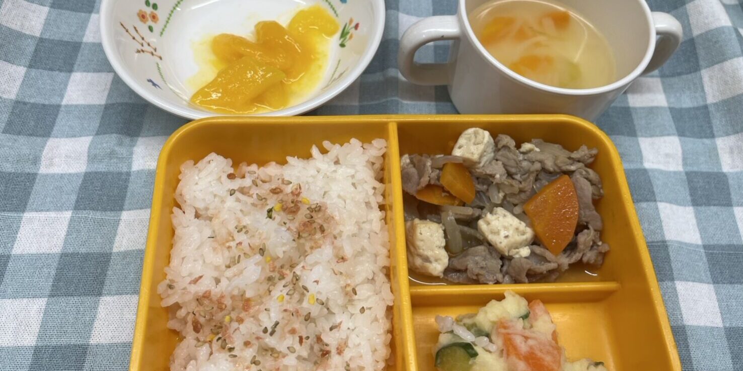 10月242025給食ブログ 【お給食】 ・すき焼き煮 ・ポテトサラダ ・中華スープ(もやし、人参、豆腐) ・ごはん ・パイン 【おやつ】 ・芋羊羹 ・牛乳 今日は新作おやつを提供してみました! 某有名店に似せた芋羊羹🎵 最初はなんだろう…と手が止まっていましたが、一口食べたらパクパクよく食べていました! Post navigationPreviousPrevious post:10月8日(水)NextNext post:10月24日(金)Related posts10月24日(金)2025年10月24日10月8日(水)2025年10月24日10月3日(金)2025年10月7日9月26日(金)2025年10月7日9月17日(水)2025年10月7日9月12日(金)2025年10月7日