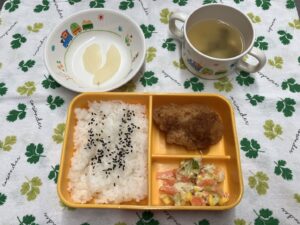 3月52026給食ブログ 【お給食】 ・白身フライ ・コールスローサラダ ・味噌汁(じゃがいも、わかめ、もやし) ・ごはん ・梨 【おやつ】 ・あんかけうどん ・牛乳 今日は保育園で1番人気な白身フライでした! あっという間になくなりもっと食べたいというくらい好評です! Post navigationPreviousPrevious post:2月19日(木)Related posts2月19日(木)2026年3月5日2月13日(金)2026年3月5日2月3日(火)2026年2月4日1月29日(木)2026年2月4日1月21日(水)2026年2月4日1月14日(水)2026年2月4日