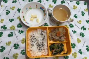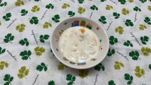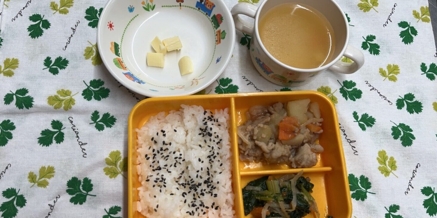 4月72026給食ブログ 【お給食】 ・肉じゃが ・ほうれん草の胡麻和え ・味噌汁(人参、玉ねぎ、豆腐) ・ごはん ・チーズ 【おやつ】 ・フルーツヨーグルト ・麦茶 少し暖かくなってきたのでヨーグルトを出してみました! とても久しぶりだったのでもっと食べたい!と声が聞こえるくらいとてもよく食べていました。 Post navigationPreviousPrevious post:3月10日(火)NextNext post:3月27日(金)Related posts4月3日(金)2026年4月7日3月31日(火)2026年4月7日3月27日(金)2026年4月7日3月10日(火)2026年4月7日3月3日(火)2026年3月9日2月24日(火)2026年3月5日