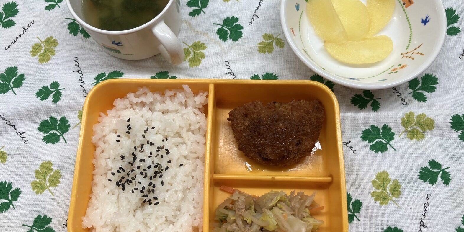 5月172025給食ブログ 【お給食】 ・コロッケ ・キャベツのツナサラダ ・中華スープ(しめじ、小松菜、人参) ・ごはん ・パイン 【おやつ】 ・きなこクッキー ・牛乳 今日のおやつはきなこクッキーでした! くまさん・うさぎさんの形にかたどってみました。 くまさんかわいいととても嬉しそうでした。 Post navigationPreviousPrevious post:4月23日(水)NextNext post:令和7年度スタート!!Related posts10月24日(金)2025年10月24日10月14日(火)2025年10月24日10月8日(水)2025年10月24日10月3日(金)2025年10月7日9月26日(金)2025年10月7日9月17日(水)2025年10月7日