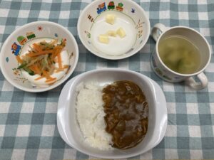 4月72026給食ブログ 【お給食】 ・カレーライス ・もやしの中華和え ・コンソメスープ(ブロッコリー、コーン、春雨) ・チーズ 【おやつ」 ・お花クッキー ・牛乳 ご進級おめでとうございます! 今日はお花見にいき、午後おやつに桜型のクッキーを食べました。 さくらの味がするなどお話しながら食べていました。 Post navigationPreviousPrevious post:3月31日(火)Related posts3月31日(火)2026年4月7日3月27日(金)2026年4月7日3月19日(木)2026年4月7日3月10日(火)2026年4月7日3月3日(火)2026年3月9日2月24日(火)2026年3月5日