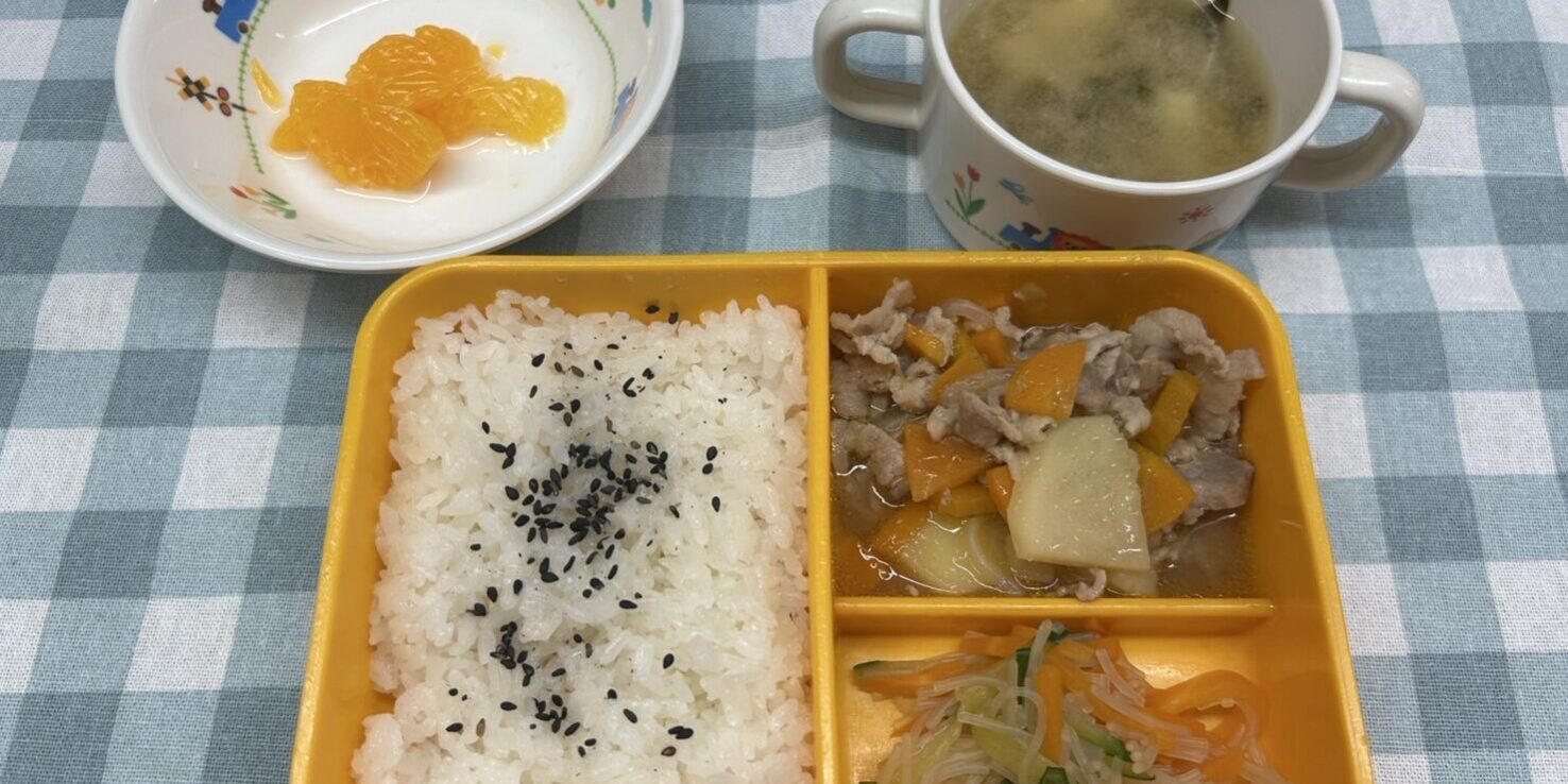 7月22025給食ブログ 【お給食】 ・肉じゃが ・春雨サラダ ・味噌汁(わかめ、豆腐、えのき) ・ごはん ・みかん 【おやつ】 ・マシュマロコーンフレーク ・牛乳 今日は、イチゴ味のコーンフレークを使って大人気おやつのマシュマロコーンフレークを作ってみました! 皆いちごの味がするととても喜んでいました! Post navigationPreviousPrevious post:6月27日(金)NextNext post:7月7日(月)Related posts10月24日(金)2025年10月24日10月14日(火)2025年10月24日10月8日(水)2025年10月24日10月3日(金)2025年10月7日9月26日(金)2025年10月7日9月17日(水)2025年10月7日
