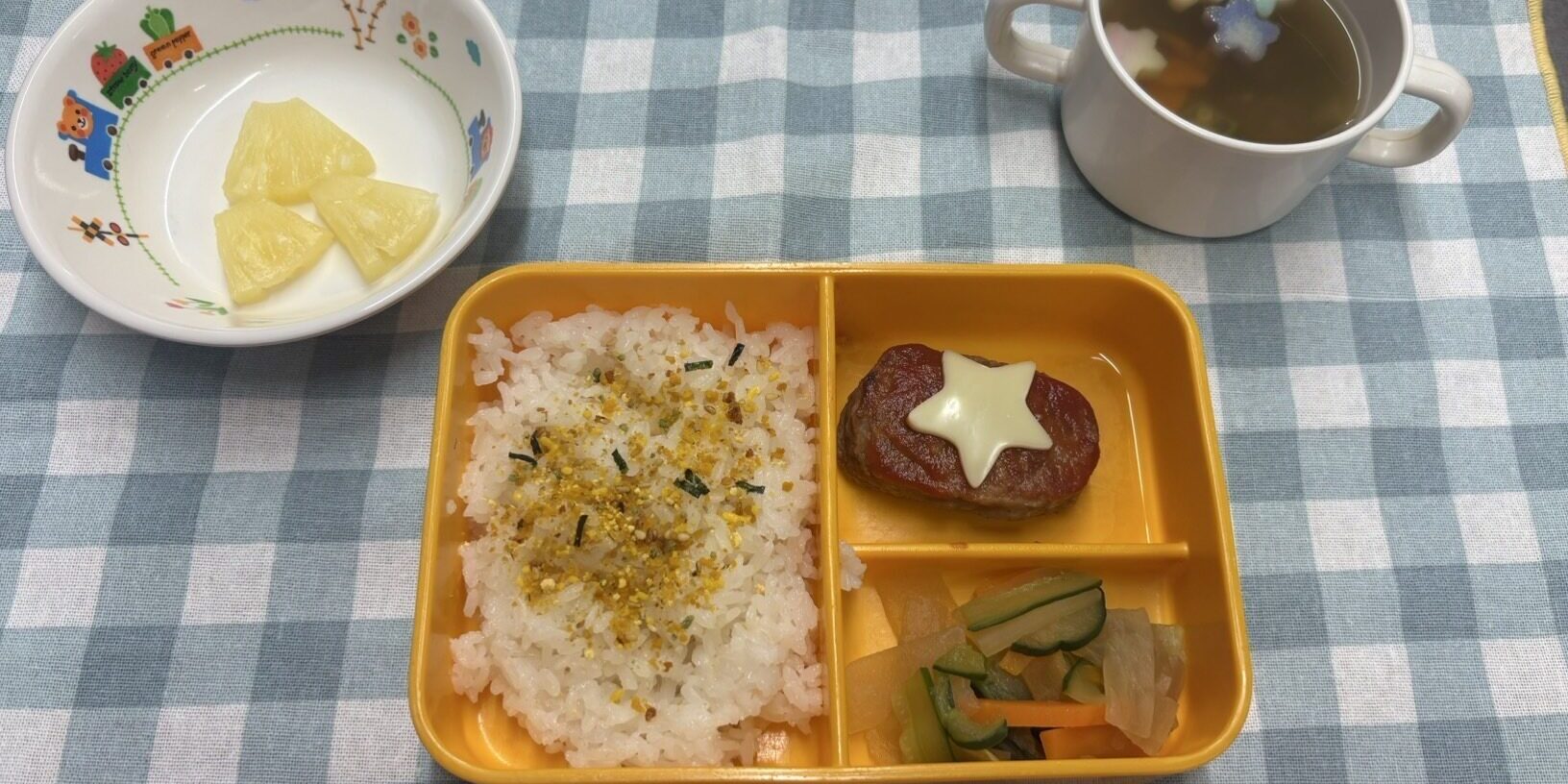 7月172025給食ブログ 【お給食】 ・お星さまハンバーグ ・短冊サラダ ・すまし汁(人参、コーン、麩) ・ごはん ・パイン 【おやつ】 ・七夕そうめん ・カルピス 今日は七夕ということで!七夕メニューにしてみました! キラキラお星さまと喜んで食べていました。 Post navigationPreviousPrevious post:6月30日(月)NextNext post:7月14日(月)Related posts10月24日(金)2025年10月24日10月14日(火)2025年10月24日10月8日(水)2025年10月24日10月3日(金)2025年10月7日9月26日(金)2025年10月7日9月17日(水)2025年10月7日