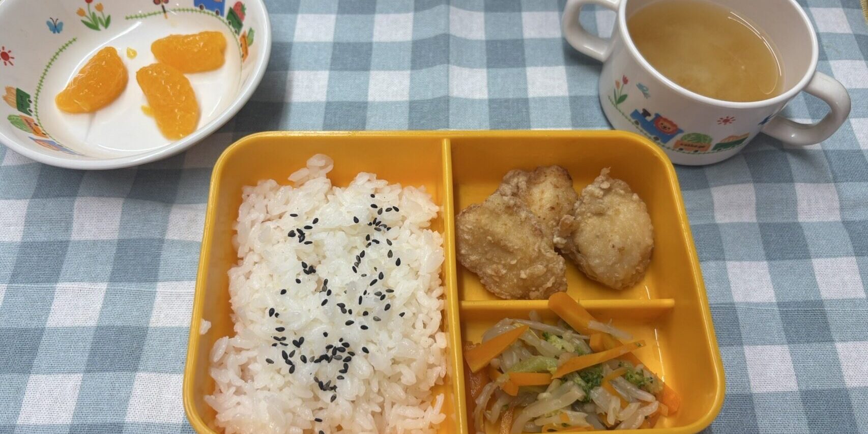 8月262025給食ブログ 【お給食】 ・唐揚げ ・ブロッコリーの胡麻和え ・味噌汁(えのき、人参、玉ねぎ) ・ごはん ・みかん 【おやつ】 ・じゃがりこ ・牛乳 今日はマッシュしたポテトに青のり、塩、片栗粉を混ぜて焼いてじゃがりこ風にしてみました! 皆不思議そうに見つめながら食べていました。 Post navigationPreviousPrevious post:⭐七夕会⭐NextNext post:8月13日(水)Related posts10月24日(金)2025年10月24日10月14日(火)2025年10月24日10月8日(水)2025年10月24日10月3日(金)2025年10月7日9月26日(金)2025年10月7日9月17日(水)2025年10月7日