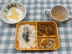10月72025給食ブログ 【お給食】 ・あんかけ肉団子 ・高野豆腐煮 ・中華スープ(人参、玉ねぎ、春雨) ・ごはん ・りんご 【おやつ】 ・誕生日ケーキ ・麦茶 今日はお誕生日会でした! 来月がお月見会という事でうさぎさんのケーキにしてみました! 9月生まれの皆さんおめでとうございます。 Post navigationPreviousPrevious post:9月12日(金)NextNext post:9月26日(金)Related posts10月24日(金)2025年10月24日10月14日(火)2025年10月24日10月8日(水)2025年10月24日10月3日(金)2025年10月7日9月26日(金)2025年10月7日9月12日(金)2025年10月7日