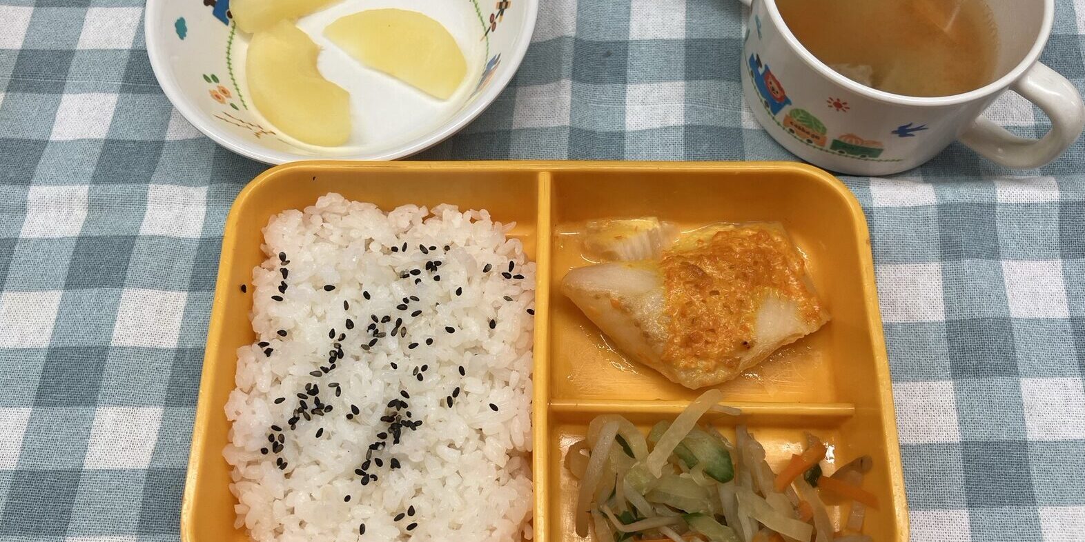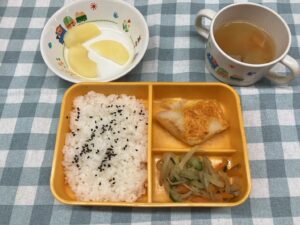10月72025給食ブログ 【お給食】 ・カレイのもみじ焼き ・五種野菜のかみかみ和え ・さつまいもと肉団子の味噌汁 ・ごはん ・りんご 【おやつ】 ・きのこごはん ・牛乳 今日は秋メニューを提供しました! カレイのもみじ焼きは初の挑戦だったのですが「オレンジ綺麗だね」と園児たちからお褒めの言葉を頂きました(笑) みんなとてもよく食べていました。 Post navigationPreviousPrevious post:9月17日(水)NextNext post:10月3日(金)Related posts10月24日(金)2025年10月24日10月14日(火)2025年10月24日10月8日(水)2025年10月24日10月3日(金)2025年10月7日9月17日(水)2025年10月7日9月12日(金)2025年10月7日