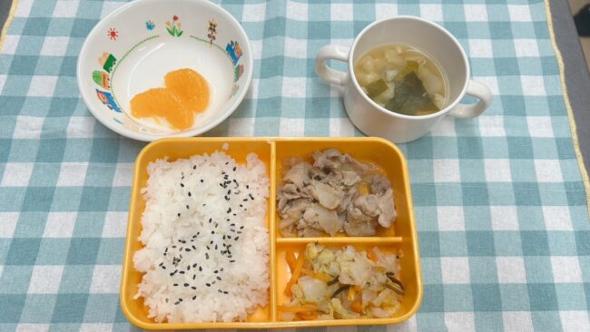 8月1日(金) 給食ブログBy ニコニコ保育2025年8月5日【お給食】 ・すき焼き煮 ・白菜と人参の塩昆布和え ・味噌汁(油揚げ、玉ねぎ、わかめ) ・ごはん ・みかん 【おやつ】 ・マカロニきなこ ・牛乳 今日のおやつはマカロニきなこでした! きなこも…