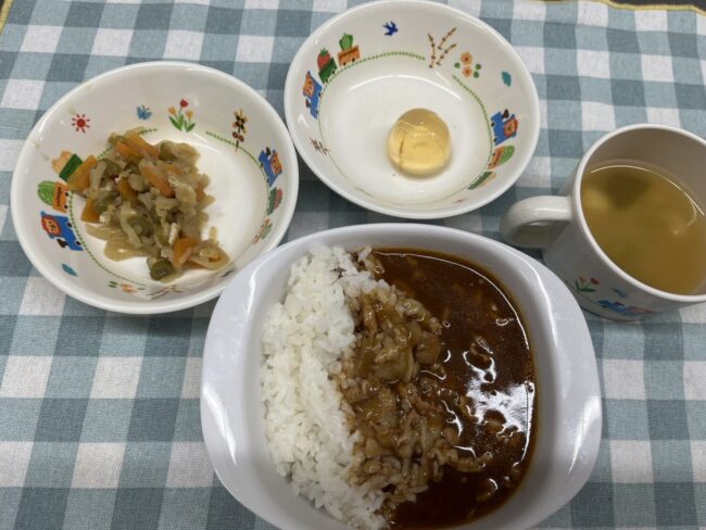 11月7日(金) 給食ブログBy ニコニコ保育2025年11月25日【お給食】 ・カレーライス ・切り干し大根の煮物 ・味噌汁(わかめ、豆腐、人参) ・ゼリー 【おやつ】 ・バナナきなこ ・牛乳 今日は先月からリクエストがあったバナナきなこを提供しました! バ…