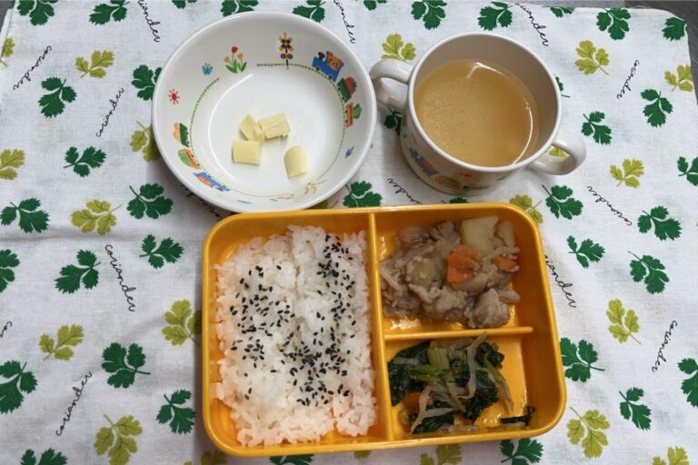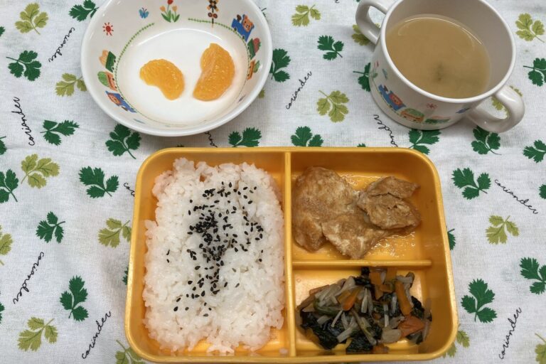 4月1日 【お給食】 ・肉豆腐 ・ほうれん草の胡麻和え ・コンソメスープ(玉ねぎ、人参、コーン) ・ごはん ・ゼリー 【おやつ】 ・バナナきな粉 ・牛乳 初めまして!今年度から給食ブログをはじめました。 宜…